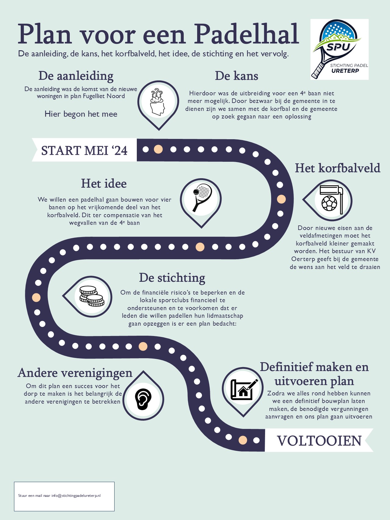Dit schema geeft op hoofdlijnen weer wat de Padelcommissie aan het realiseren is: